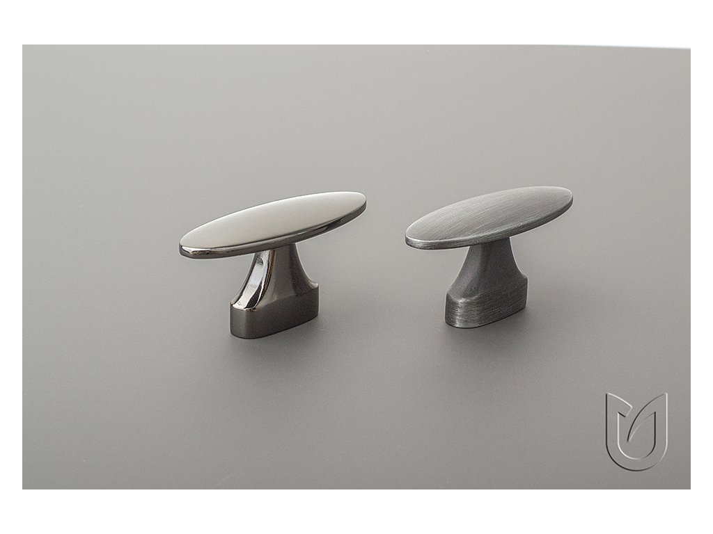 Knopka oválného tvaru Graffito ve staročerné barvě a v provedení tmavý lesklý nikl má ergonomický tvar pro dobré uchopení do dlaně. Ve staročerné verzi se hodí na rustikální typ nábytku, ale i aktuální, velmi trendové dekory dřeva s výraznou kresbou. V provedení lesklého niklu je úchytka vhodná na kombinaci s unidekory, tmavým dřevem, ale i pro kontrast s bílou deskou. Využití knopky je mnohostranné. Od nábytku v ložnici přes různé komody, skříňky, kancelářský nábytek až po využití ve stylovém salónu nebo hotelu. Kovová knopka. Délka: 56 mm, Rozteč:16 mm, Povrch: staročerná broušená //