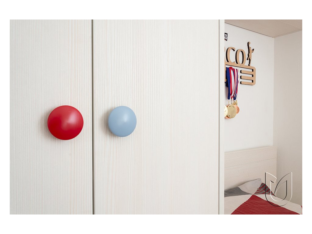 Knopka průměr: spodní část 31,5 mm / vrchní část 57 mm. Výška: 27,5 mm, povrch: modrá, použity ekologické laky s atestem