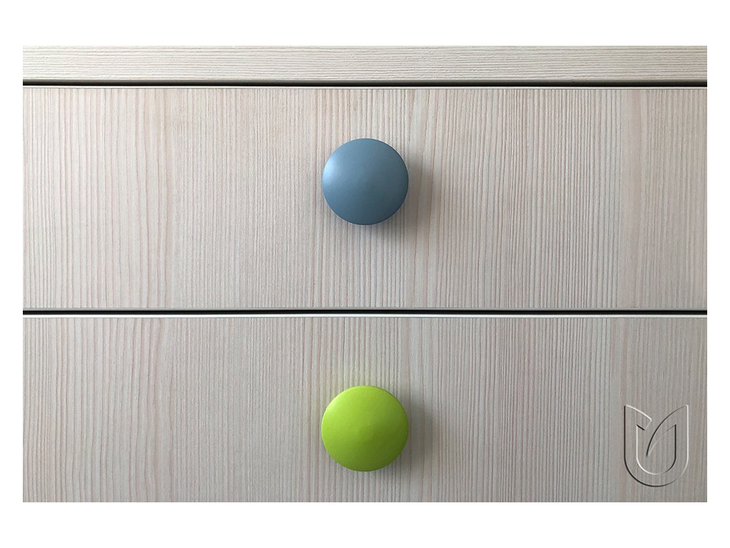Knopka průměr: spodní část 31,5 mm / vrchní část 57 mm. Výška: 27,5 mm, povrch: zelená, použity ekologické laky s atestem