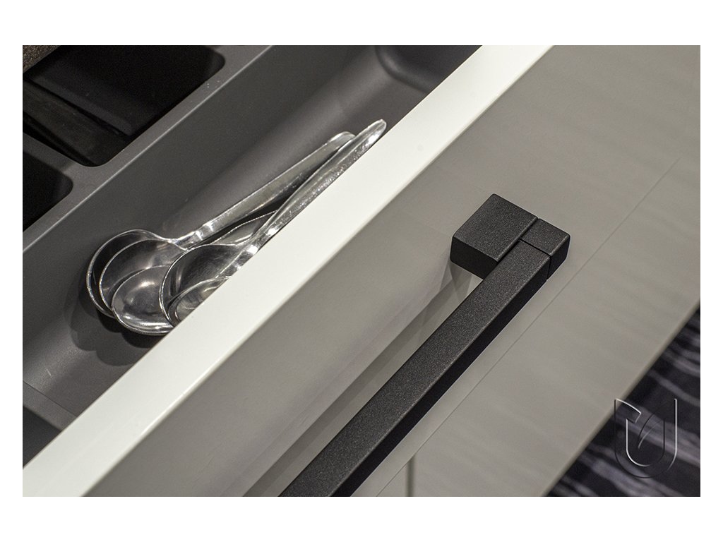 Kovová úchytka černá matná. Délka: 280 mm, Rozteč : 256mm, Šířka: 12mm, Výška: 30mm.