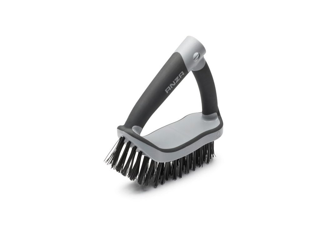 Obojručná oceľová kefa s predĺženým a zakriveným profilom hlavy pre optimálne využitie. Ergonomicky mäkká rukoväť.
